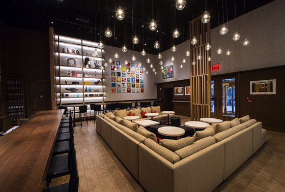 Aldo Sohm Wine Bar situé au rez-de-chaussée du Bernardin, il s’articule autour d’un imposant bar contemporain, sculptures et pièces d’arts modernes habillent les murs monumentaux, une impressionnante bibliothèque donne à l’espace une impression d’intérieur de maison. Un grand canapé occupe l’espace central offrant un côté convivial