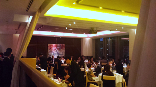 La salle de restaurant panoramique qui domine la ville de Osaka depuis le 35 éme étage, salle complète ce soir-là également pour le gala d’automne des Frères Pourcel.
