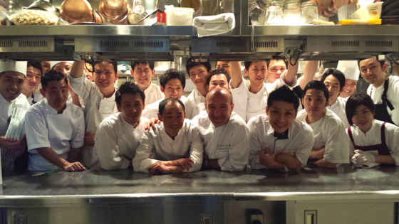 L’équipe au complet du restaurant » Sens & Saveurs » des frères Pourcel à Tokyo autour de Madame Hiramatsu.