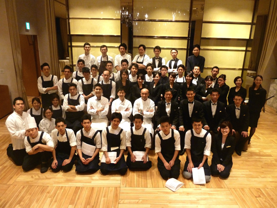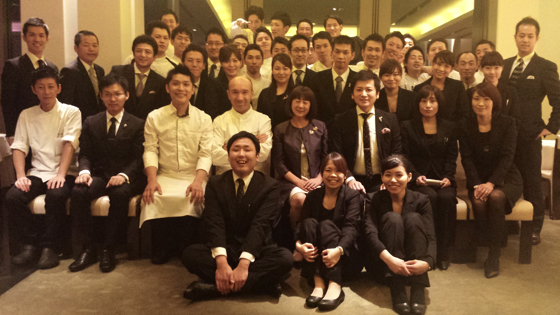 Départ dès le lendemain pour Osaka, le chef Laurent était aussi très attendu dans cette ville où le groupe Hiramatsu a aussi ouvert plusieurs restaurants. Les deux chefs Japonais, Kamoda Takeshi de » Sens et Saveurs « à Tokyo et Kotaro Hasegawa du nouveau restaurant » La Fête Hiramatsu » à Osaka entourés des équipes des différents restaurants du groupe venues donner un coup de main pour les soirées de gala.
