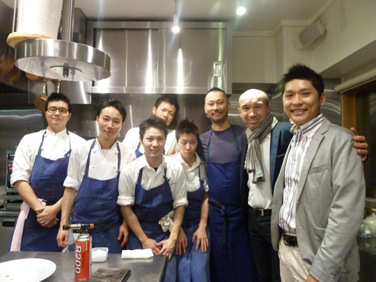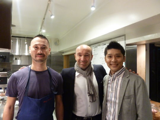 Ci dessous le chef Shinya Fukumoto accompagné de Laurent Pourcel et de Kamoda Takeshi chef de Sens & Saveurs à Tokyo.