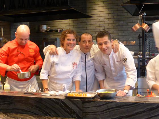 Le chef Hollandais Alain Caron, la chef américaine Ione Burge de San Francisco et le chef Hollandais Lars Van Gallen avant une démonstration de cuisine.