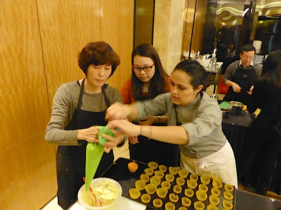 Apprendre à se servir d’une poche avec la chef pâtissière chinoise Wang Yuan Ly .