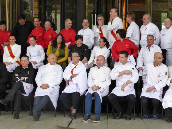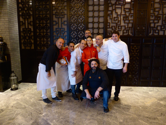 Ce jeudi matin, c’est une bonne cinquantaine de chefs qui étaient réunis devant le lobby de l’Hôtel Sofitel Sunrich à Guangzhou pour la photo de famille du Festival autour du chef Nicolas Vienne organisateur du festival..