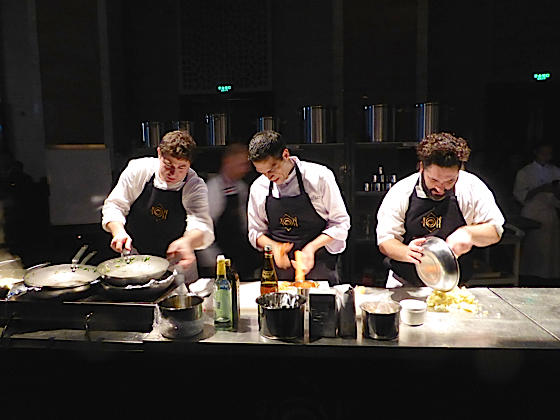 Le chef chinois Da Dong est arrivé avec son four pour laquer le canard et une partie de ses équipes !