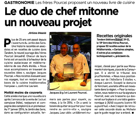 La presse en parle à l’occasion du lancement du livre Tandem aux éditions Glénat des Frères Pourcel, la presse locale donne un large écho, une occasion à quelques jours des fêtes de parler des bons produits.