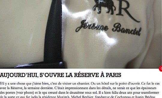 De l’actu au quotidien… comme ci-dessus l’ouverture de La Réserve à Paris.