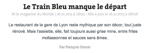 « François Simon, lui, après un an de silence et son départ du Figaro, prend la place de JP Géné (parti au Monde Quotidien). La vérité oblige à dire que sa manière est nettement plus drôle que celle de son prédécesseur (il démarre en fanfare avec une descente cinglante du Train Bleu). »