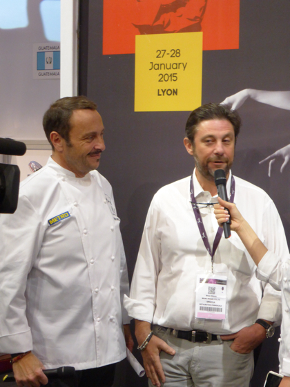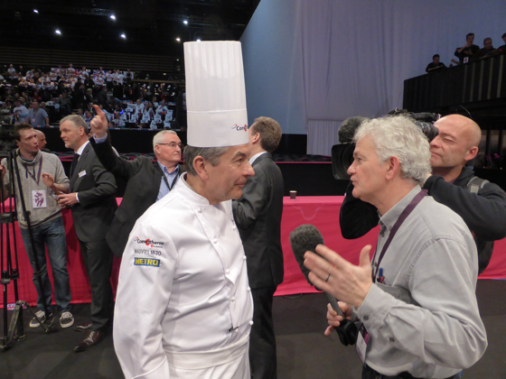 De bon matin les interviews commencent …. au micro Vincent Ferniot… On commence par les chefs Régis Marcon et Georges Blanc.