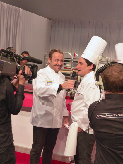 Dès 10 h la presse se presse devant le box cuisine du candidat français Nicolas Davouze.