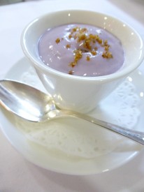Tube croustillant en légère émulsion de citron, compoté de banane, sorbet aux 4 fruits.