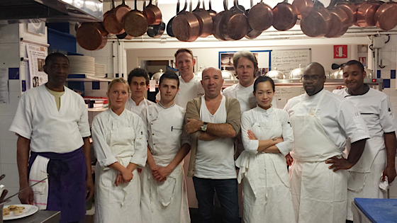 Ci dessous une partie de l’équipe de cuisine de l’Hôtel Belles Rives autour du chef Jacques Pourcel.