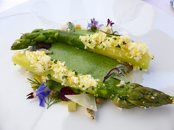 Mimosa d’asperges vertes, coulis de cresson comme à Mereville.