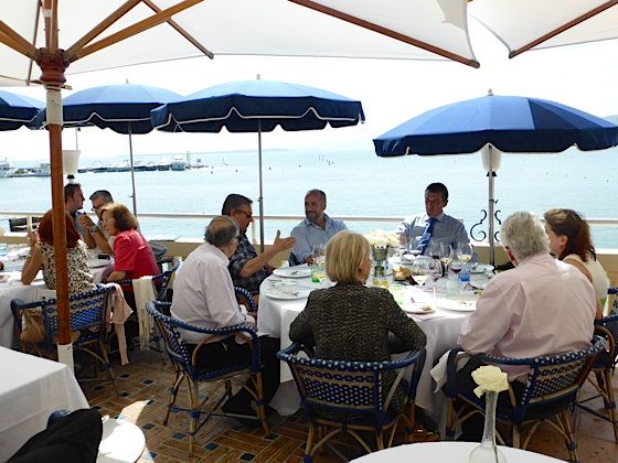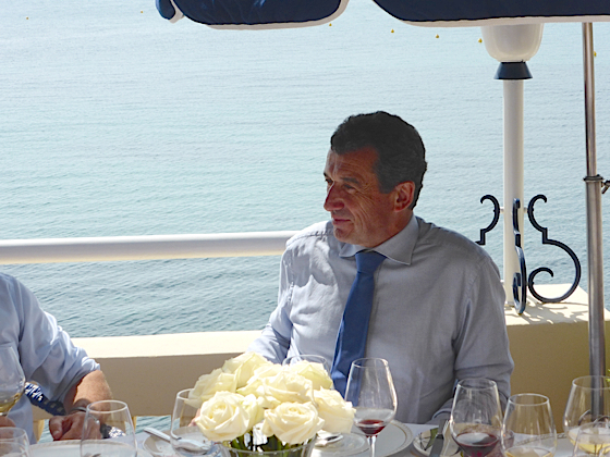 Les convives se sont retrouvés sur la très belle terrasse ensoleillée dominant le golfe de Juan-Les-Pins de l’Hôtel Belles Rives, accueillis par l’hôte des lieux Marianne Estène-Chauvin ( ci-dessus ) propriétaire des Hôtels Belles Rives et Juana.