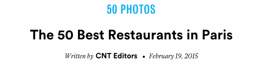 Le magazine américain Condé Nast Traveler, classe les meilleures restaurants de Paris par Arrondissement, certes c’est un classement de plus … mais celui-ci à de l’importance, car beaucoup d’Américains qui se rendent à Paris suivent les informations du magazine.