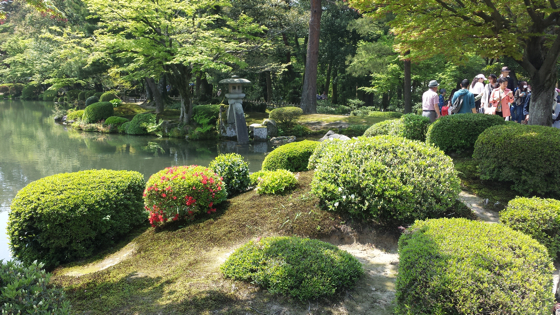 Grande affluence dans les jardin, des milliers de japonais se rendent chaque mois à Kanazawa pour visiter cette nature sculptée.