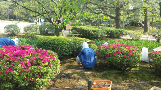 C’est souvent sous un soleil de plomb que vous visiterez ce trésor national de l’histoire du Japon qui date du 17éme siècle classé » Site spécial de paysage d’intérêt national « . Ici tout a été conservé en l’état, car cette ville n’a jamais subit de tremblement de terre et n’a jamais était touché par la guerre. Dans ce jardin le temps c’est arrêté, vous serez hors du temps, vous constaterez avec surprise par l’attachement et la fierté qu’ont les Japonais pour leurs jardins, eux qui vivent dans des villes urbanisées et très condensées, ils y trouvent la verdure, le calme, la sérénité.