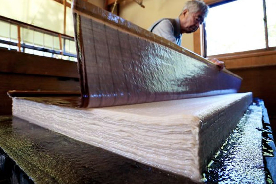 Le papier washi est célèbre dans le monde entier. Il est très résistant bien que très fin, sa flexibilité en fait un matériau de choix pour de nombreux artisanats traditionnels, la décoration intérieure etc. Ici à Kanazawa, une spécialité, c’est d’y intégrer de la feuille d’or, c’est un papier d’une exceptionnelle qualité produit manuellement à partir de l’écorce d’un arbre de la famille du murier, ce papier japonais a été reconnu au patrimoine culturel immatériel de l’humanité de l’Unesco. Les caractéristiques de ce papier sont sa brillance et sa solidité naturelles ainsi que son épaisseur uniforme. Sa qualité est telle que l’on dit que la famille impériale l’utilise pour les enveloppes de ses invitations écrites. Ce papier sert aussi à relier des livres de style japonais et aux impressions d’art.