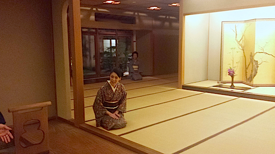 L’accueil à l’entrée du restaurant Ryotei Kinjohro, il faudra abandonner ses chaussure avant d’entrer et de marcher sur les tatamis.
