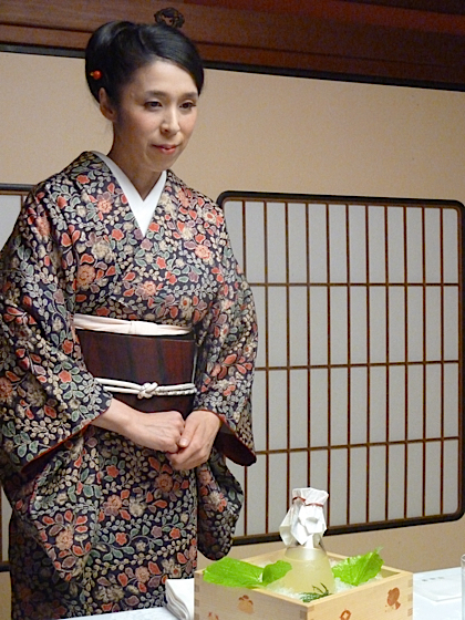 Le service du saké posé sur glace, chaque convive a choisi son verre.