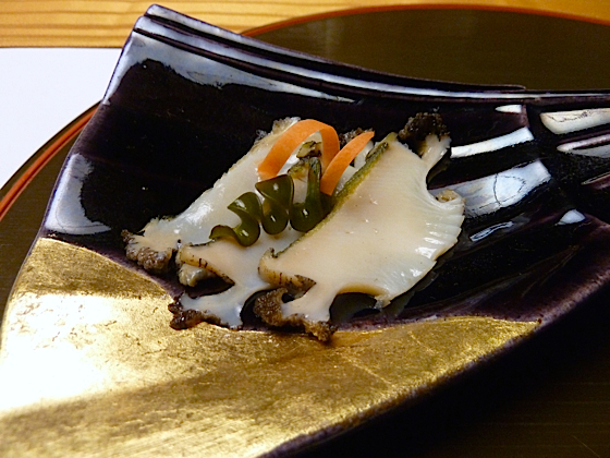 Vous y goûterais une cuisine vraiment très personnelle qui reprend tout les codes et le cérémonial qui va avec. Installé dans une magnifique maison qui a traversé l’histoire, le temps s’est arrêté ici, les jardin son sculptés, le calme règne, la bâtisse est de bois, les parois de papier, les sols couverts de tapis, tout ici préserve la culture de la région de Kanazawa.
