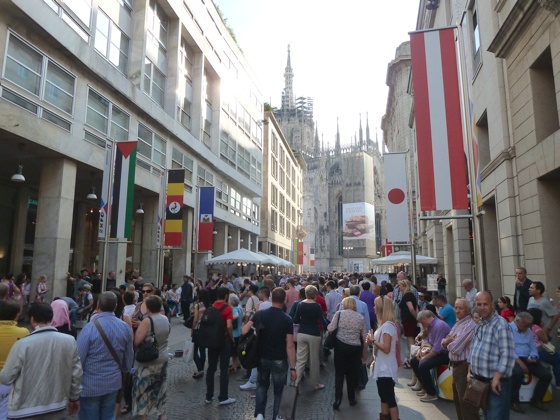 Prolongez ver la Via Montenapoleone, une des rues les plus connues au monde, c’est un peu l’Avenue Montaigne de Milan, ici s’y succèdent les boutiques le plus luxueuses, les grandes enseignes de la mode y ont leurs vitrines.