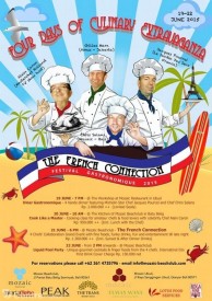 Durant 4 jours Bali va vibrer version » Cuisine Française « , cours de cuisine pour les professionnels et les amateurs, dîners privés en live, dîner de gala à 8 mains, et » BBQ Party » au bord de l’eau.