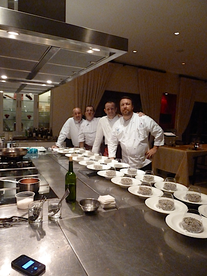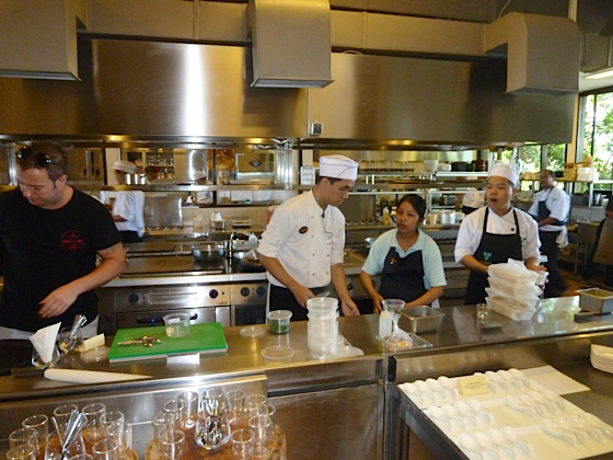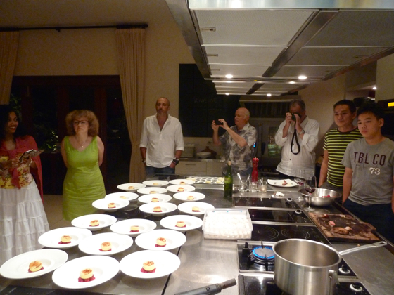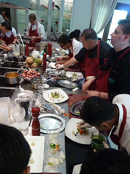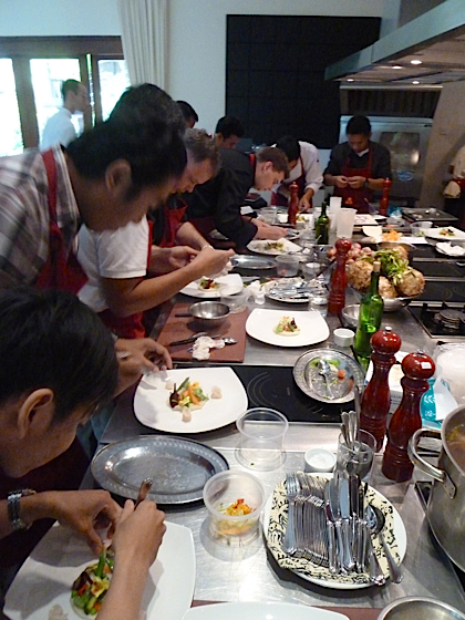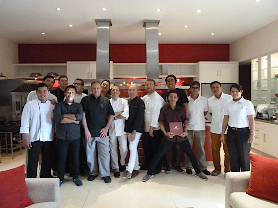 Cours de cuisine pour les chefs professionnels dans les cuisines de Mozaïc à Ubud par le chef Jacques Pourcel.