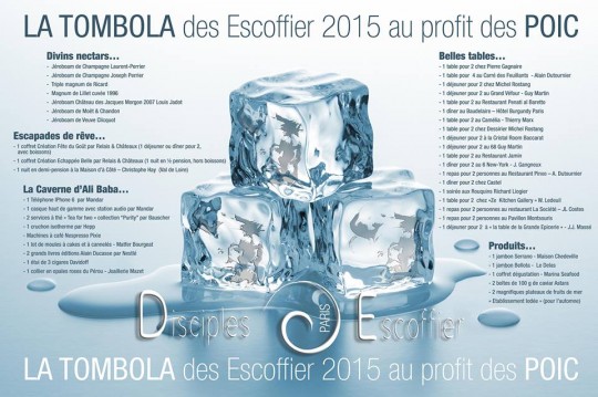 La grande tombola s’est déroulée au cours de la soirée, escapades de rêve, invitations à de très belles tables, divins nectars, produits, équipement et bijou….. plus d’une quarantaine de lots ont été distribués dans la soirée, le tout au profit de l’Association POIC.