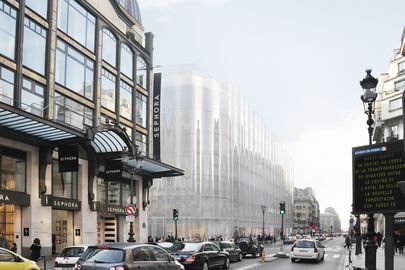 C’est l’agence japonaise d’architecture Sanaa (prix Pritzker 2010) qui a dessiné la façade en verre ondulé de triple épaisseur de 25 m de haut et 73 m de long qui habillera la rue de Rivoli et qui avait créé une partie de la polémique.