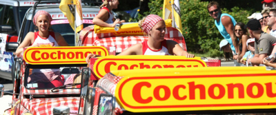 Les amateurs de saucisse sèche vont râler, la célèbre caravane Cochonou était absente ce vendredi 10 juillet pour la 7e étape de la Grande Boucle, les actions coups de poing menées la veille par des jeunes agriculteurs, s’en sont notamment pris à des voitures Cochonou. Les fameuses 2CV rouges et blanches ont été chahutés par des jeunes agriculteurs déguisés en cochon. Les producteurs dénoncent » les prix trop bas pratiqués par la grande distribution, qui se répercutent sur leurs marges « , ils ont notamment pris pour cible la marque, coupable selon eux de ne pas défendre suffisamment le » manger français « . La Caravane Cochonou, est donc restée au garage, seules les animations à l’arrivée et au départ sur le village du Tour sont maintenues, les prochaines étapes Bretonnes risquent d’être tendues.
