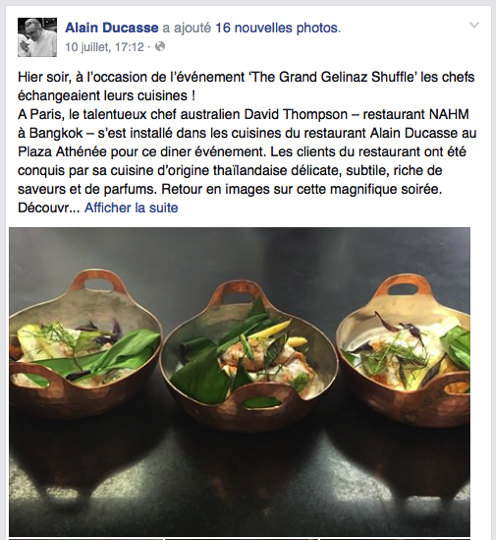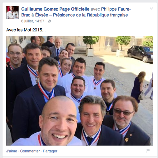 Alors sur Twitter, Instagram, Facebook… les chefs ont leurs réseaux d’amis et de fans, ils buzzent, et n’en finissent pas de se mettre en situation, selfies, accolades, en cuisine, leurs plats, ou même les membres de leurs équipes pour certains comme le chef Fréchon. Un des plus actifs est le chef du Palais de L’Élysée Guillaume Gomez champion toutes catégories de la présence sur les réseaux sociaux. Pas mal aussi le chef Benallal Akrame, mais aussi les grands noms qui sont assez actifs comme Ducasse, Pic, Piège, Robuchon pour les Français, les chefs qui font de la télé en France comme Cyril Lignac sont aussi très populaires. À l’étranger, les Gordon Ramsay et Jamie Oliver sont les champions toutes catégories, Raymond Blanc pour les Anglais est bien placé dans la course et pour les États-Unis ceux qui font de la télévisions seront très populaires comme Guy Fieri, Mario Batali, Éric Ripert…