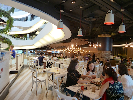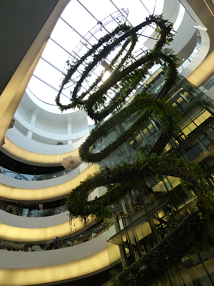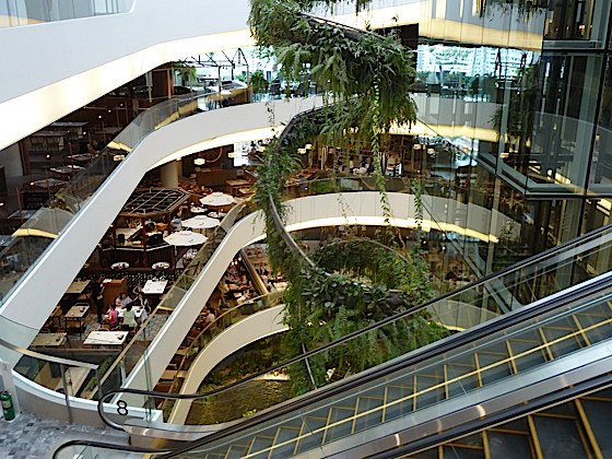 L’originalité du concept c’est qu’ils est totalement dédié à la nourriture, vous pouvez bien sûr profiter des ascenseurs et des escalators, mais ce qui est intéressant, c’est l’allée qui en colimaçon permet de se balader un peu comme dans une ruelle de restaurant, c’est assez unique pour un centre commercial. À terme toute une série d’animations, de salle de concerts, de conférences, prendront place au sommet de l’immeuble ce qui donnera de l’animation jusqu’au sommet du bâtiment.