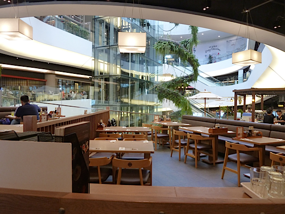 Revenons en à EmQuartier, ce bâtiment hyper design clairement futuriste, propose une bonne trentaine de restaurants, de pâtisseries, de bar à vins, de concepts originaux. L’accès se fait depuis un jardin tropical intérieur où une énorme chute d’eau amène fraîcheur et offre des espaces de repos. Il y a un accès direct à partir de Skytrain Phrom Phong et des passerelles vers le centre commercial Emporium.