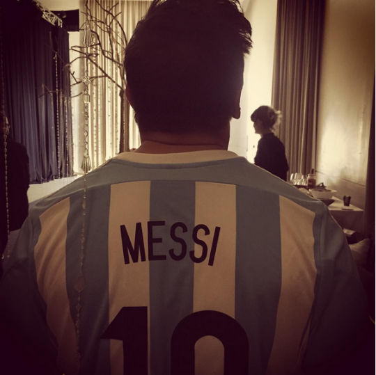 Avant de quitter Buenos Aires pour rejoindre Miami, le chef pâtissier Jordi Roca a glissé sur lui le maillot du numéro 10 de l’équipe de foot d’Argentine, Messi.