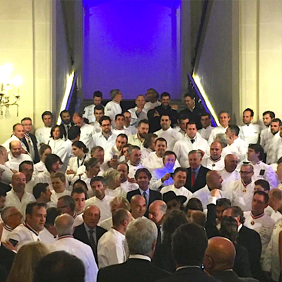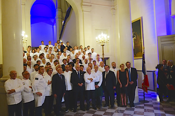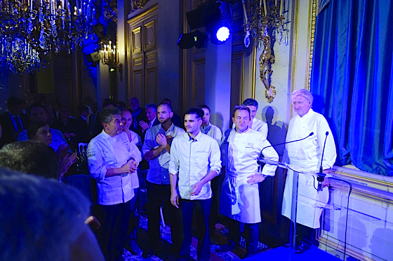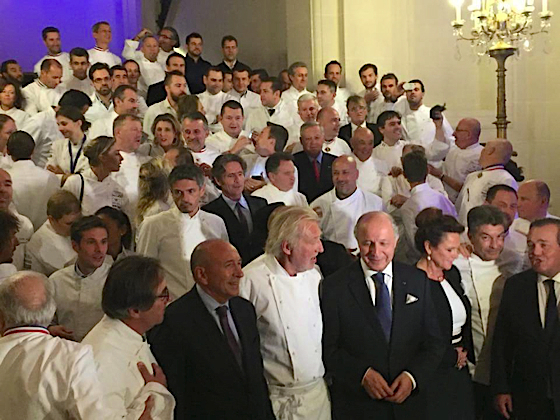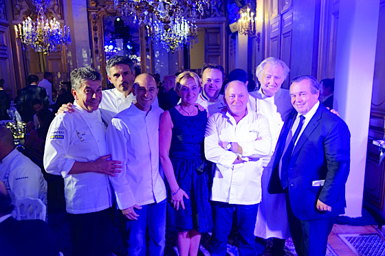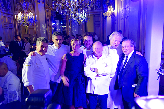 Les chefs qui ont oeuvré ce soir, Régis Marcon, Christophe Adam, Maire-Odile Fondeur, Maxime et René Meilleur, Emmanuel Renaut, Pierre Gagnaire Olivier Ginon.