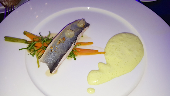 René et Maxime Meilleur : truite Fario cuite au bleu, accompagnée de beurre frais fondu, carottes à l’oseille, sabayon acidulé