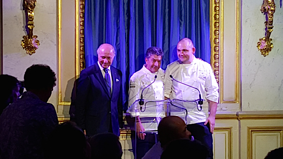 était au rendez-vous du Dîner des Grands Chefs qui se tenait ce mardi soir 22 septembre au Quai D’Orsay à Paris pour célébrer la finale du Bocuse D’Or France 2015. Un évènement qui a attiré les grandes Toques Françaises et la presse gastronomique.