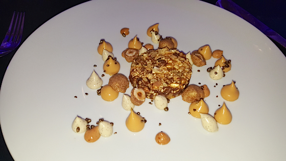 Christophe Adam : Coeur de ganache chocolat Bahibé, Praliné 7 fruits, Crémeux vanille de Madagascar, caramel Mascarpone.