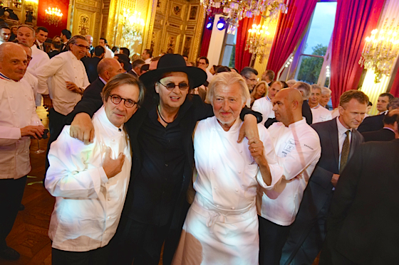Les premiers chefs arrivent dès 19h, ci-dessus Gérald Passédat, Marc Veyrat, Michel Rostang et Alain Dutournier.