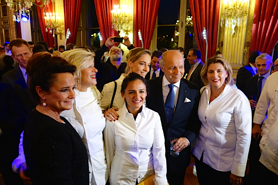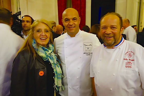Il n’y avait pas beaucoup de femmes chefs ce soir au Quai D’Orsay, ci-dessus aux côtés du couple Fabius, Flora Mikula, Amandine Chaigneau, Stéphanie Le Quellec …