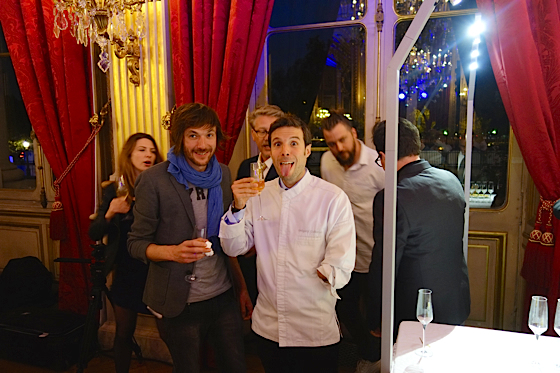 La jeune génération des chefs :Romain Tischenko, Grégory Cuilleron, Florent Ladeyn, en arrière plan le journaliste et présentateur télé Sébastien Demorand.