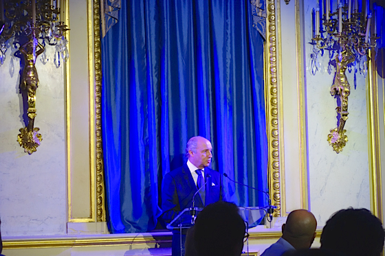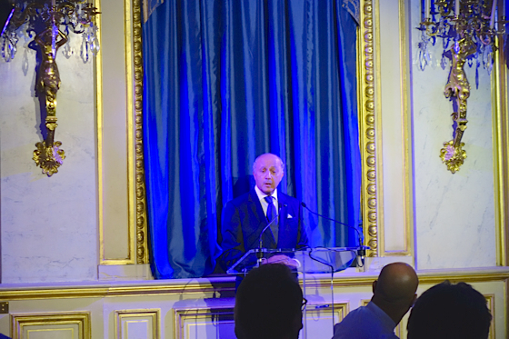 Laurent Fabius prend la parole, il rappelle son attachement à la gastronomie, la cuisine française, les chefs de cuisine et les engagements et actions menées depuis plusieurs mois pour la profession.