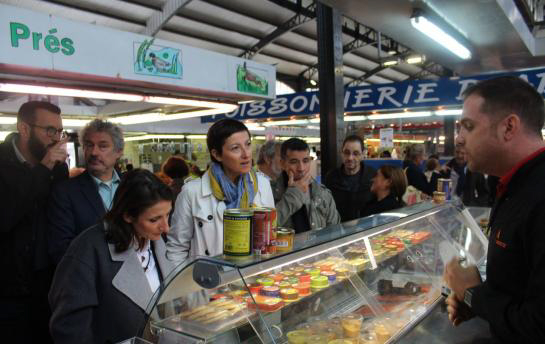 Ce vendredi matin la chef Anne-Sophie Pic sur le marché Saint-Denis place Victor Hugo à Paris à la rencontre des commerçants.