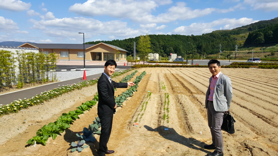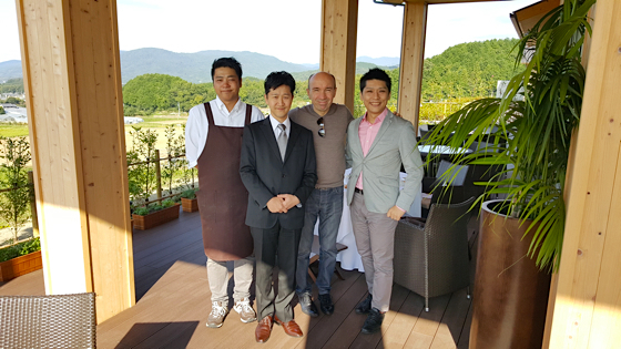Bienvenue à la campagne, ici l’hôtel met en place ses propres cultures, un immense jardin est attenant à l’hôtel, ici seront cultivés les légumes que les chefs proposeront dans leurs assiettes. Ci-dessus le chef Kotaro Hasegawa exécutif du groupe Hiramatsu et le chef Tomodo chef du restaurant Sens & saveurs à Tokyo.