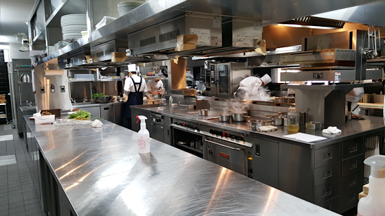 Les cuisines sont équipées pour assurer la cuisine gastronomique qui est servie sur site, une cuisine inspirée du terroir.