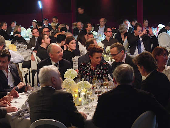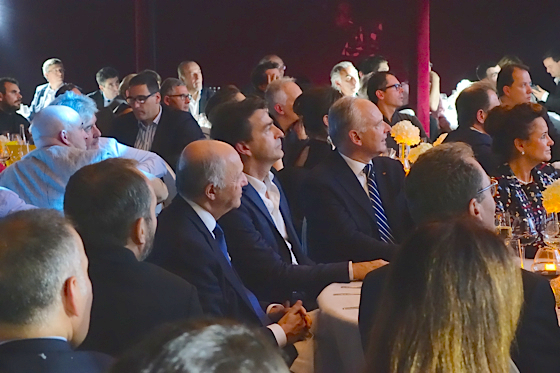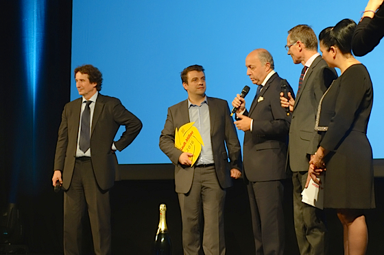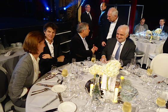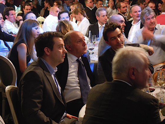 Dans la salle le Ministre des Affaires Étrangères Laurent Fabius, à ses côtés le chef Yannick Alléno, et Philippe Gombert le Président International des Relais & Châteaux.