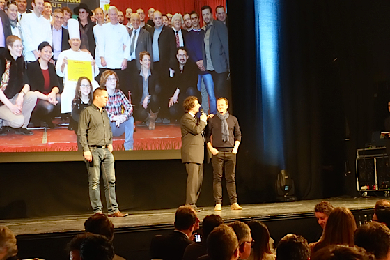 Les 4 et 5 Toques montent sur scène, c’est toujours impressionnant de rassembler plus de quarante grands chefs sur un même plateau. Les trois derniers 5 Toques Arnaud Donckele, Philippe Labbé et Christian Le Squer sont mis à l’honneur.