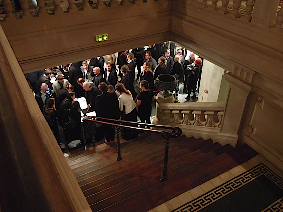 Dès le début de soirée, les invités pouvaient profiter d’un apéritif dans le grand hall du Théâtre, à l’extérieur une impressionnante file d’attente pour rentrer faisait déjà comprendre l’intérêt d’être là ce soir.