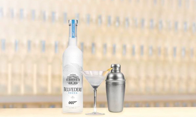 Cette année, Bond aurait délaissé son dry Martini pour une Vodka-Martini … Belvédère en mire de ligne.